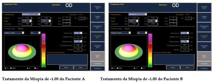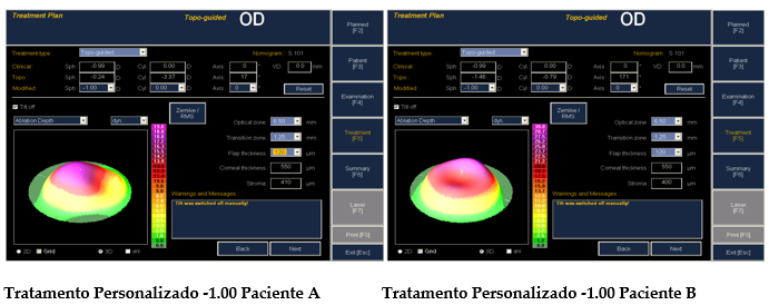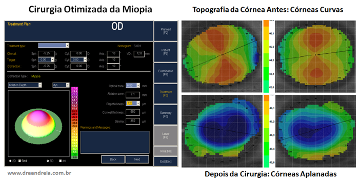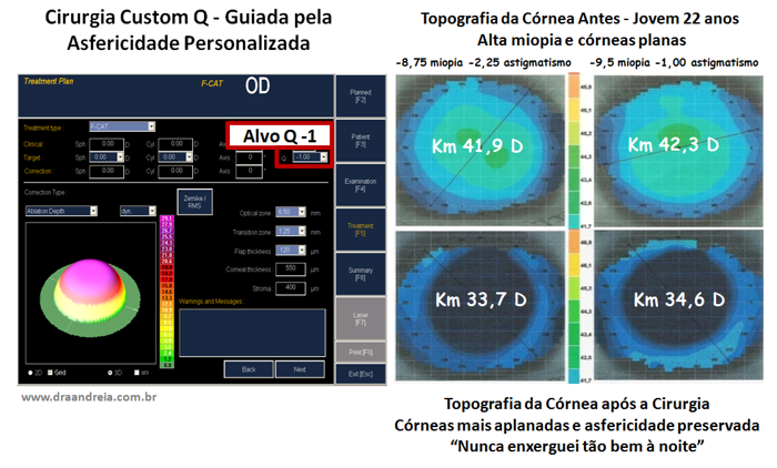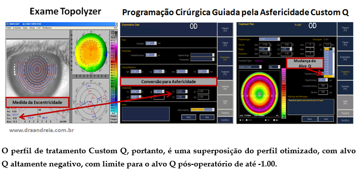 O programa de tratamento asférico personalizado, ao corrigir a miopia com a programação do alvo Q negativo, não irá causar o aplanamento demasiado da córnea que seria obtido sem a programação do Q negativo.