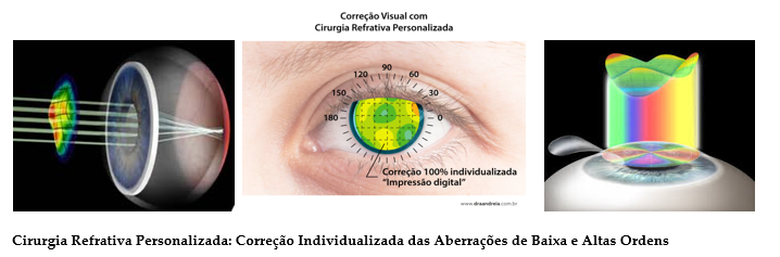 Na Cirurgia Refrativa Personalizada ou Customizada guiada pelo Wavefront da Córnea, o padrão de ablação do Excimer Laser é realizado de forma individualizada para cada olho, considerando não apenas o tratamento das aberrações de baixa ordem – miopia ou hipermetropia e/ou astigmatismo, mas também o tratamento das aberrações de alta ordem específicas de cada olho, medidas com a aberrometria da córnea.