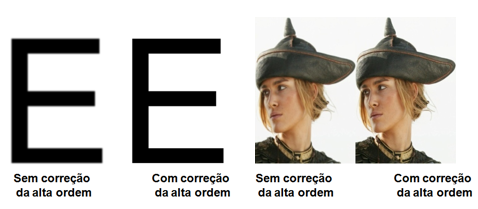 Simulação da Visão sem correção e com correção das aberrações de alta ordem