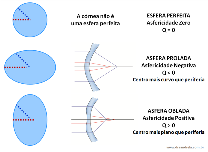 No entanto, a córnea não é uma esfera perfeita, pois existe diferença da sua curvatura do centro para a sua periferia.