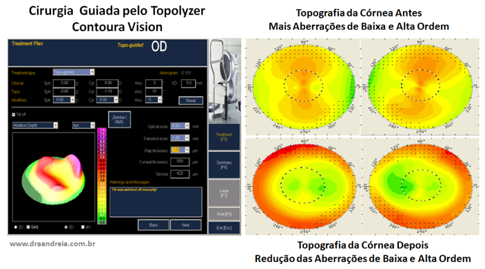A Cirurgia Refrativa Personalizada ou Customizada guiada pela aberrometria da córnea Topolyzer é também conhecida como Contoura Vision (LASIK Topoguiado pelo Topolyzer).