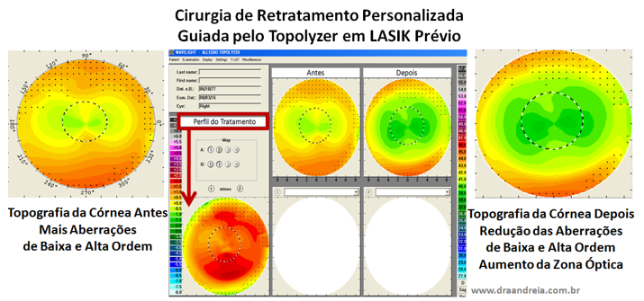 Na nossa Tese de Doutorado na Escola Paulista de Medicina – UNIFESP, comprovamos que o Retratamento Personalizado guiado pelo Wavefront da Óptica Total foi superior ao Retratamento Convencional, em relação à melhor correção das aberrações de baixa e alta ordens e melhor qualidade visual, especialmente em situações de baixo contraste luminoso.
