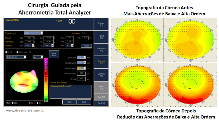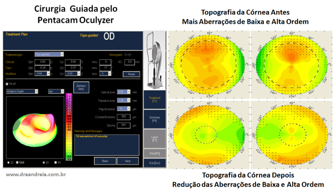 Atualmente, também é possível realizar a Cirurgia Refrativa Personalizada ou Customizada guiada pela aberrometria da córnea, medida pelo exame do Oculyzer, que é a tomografia do Pentacam com finalidade também cirúrgica.