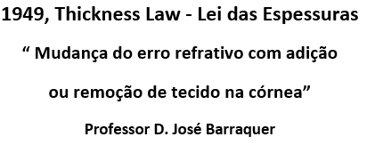 A Lei das Espessuras do Prof. Dr. José Barraquer postula que, ao remover, agregar ou modificar o estroma corneal, o resultado final é a modificação do raio de curvatura na interface corneal anterior e alteração do erro refrativo original.