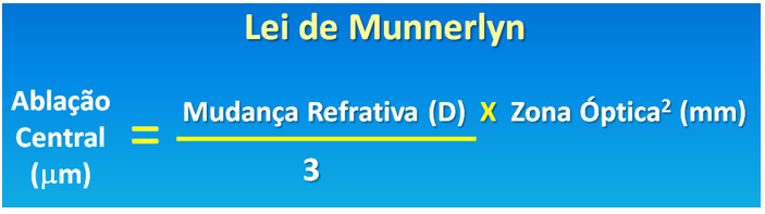 Para melhor exemplificar, o nomograma da ablação convencional é baseado na Lei de Munnerlyn, na qual a profundidade central da ablação é igual à mudança refrativa dividida por 3, multiplicada pelo quadrado da zona óptica. Deste modo, a profundidade de ablação cresce exponencialmente com o aumento da correção refrativa e com o aumento do diâmetro da zona óptica.